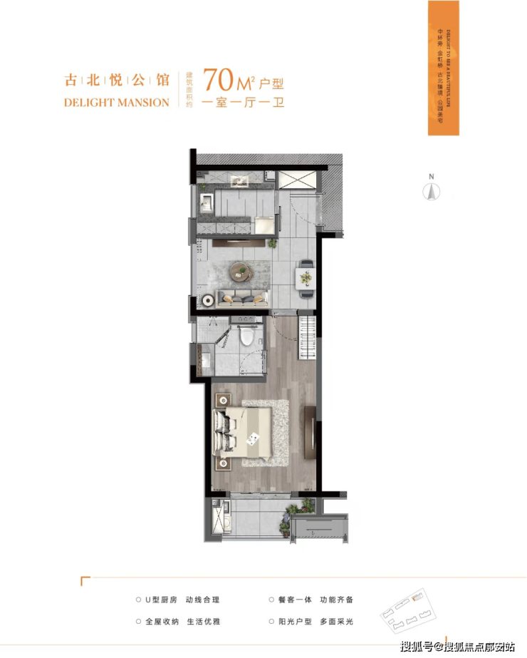 建面约70㎡户型▼