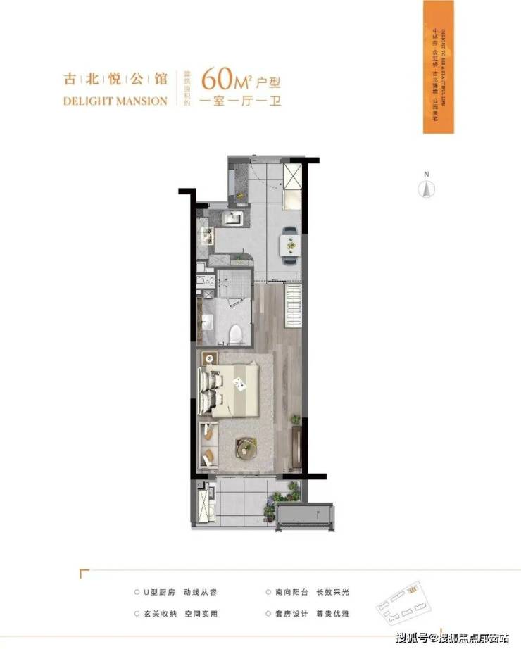 建面约60㎡户型▼