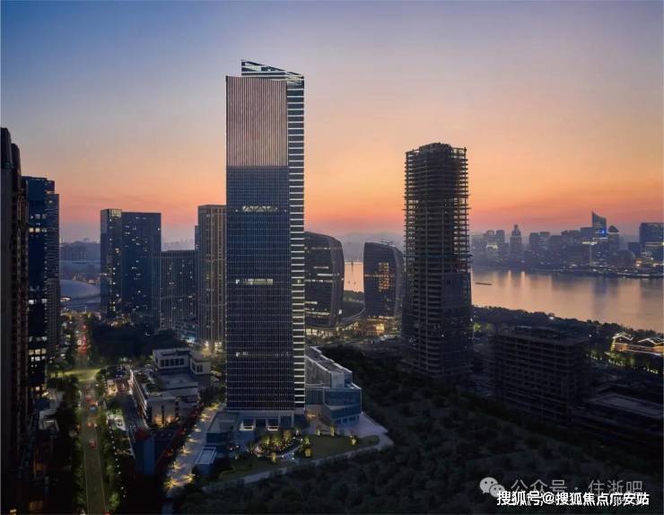 项目直线距离钱塘江约450M,以约90万方恢弘体量、约240米天际高度,满足世界峰层人物精神欲望的最高向往,成就扛鼎杭州江岸华宅的全球天际资产。