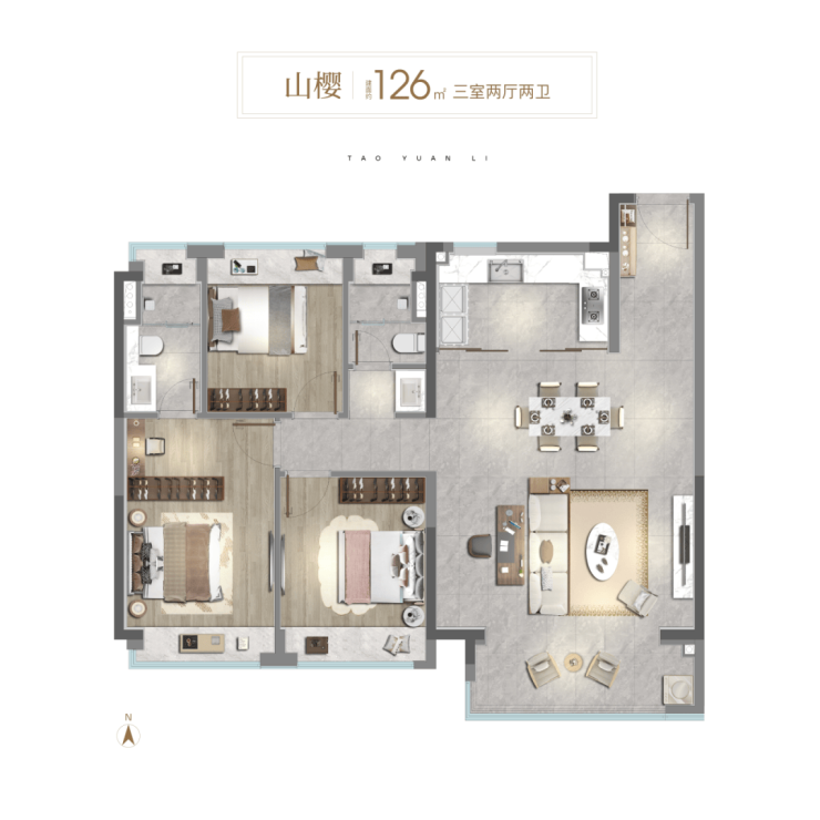 层高高不仅让空间更豪迈,更增加了立体空间。如建面约126㎡的户型等于多了25m³-37m³的空间,提高居住舒适度的同时增加了收纳。