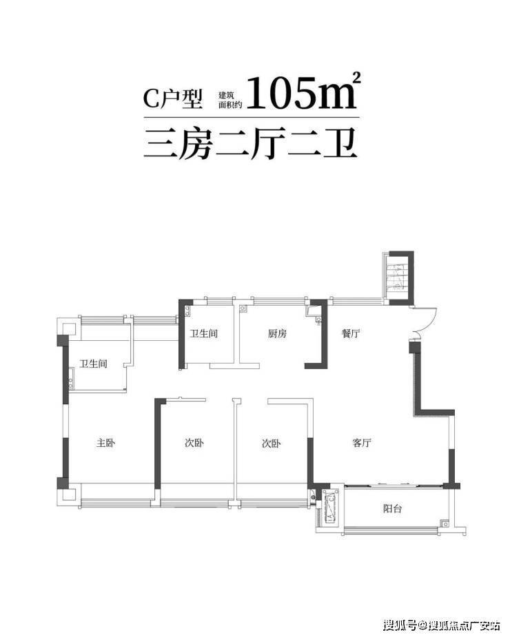 建筑面积约100㎡雅致三房两卫,满足二娃时代;