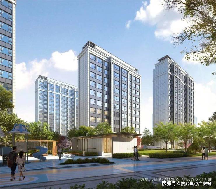 通过园林中曲径通幽的设计手法,布置景墙设计,引人入胜。社区内打造大树聚场、儿童乐园、阳光草坪、健身跑道等多个功能空间,依托架空层构建出更多的互动空间,扩展社区内的活力活动场域,为居者营造更多幸福生活的场景。