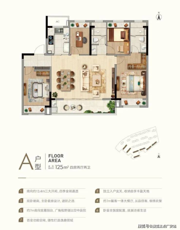 A户型 建筑面积约125㎡ 四房两厅两卫