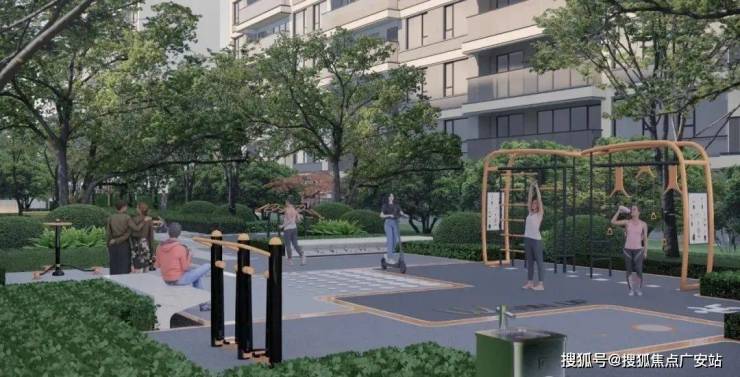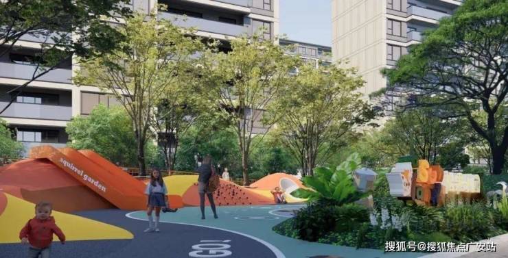 周边配置独立成环的跑道、康体健身设施以及休闲阳光草坪,满足照看成年人的运动和休憩需求。阳光倾撒之下,老中幼青各得其乐。
