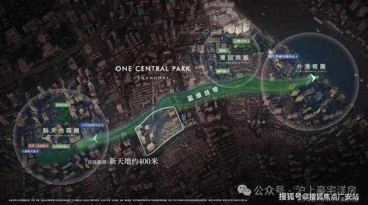 距离新天地直线距离约400米,作为蓝绿丝带规划上的关键节点,随着大新天地东进南拓战略逐步实施,通过水景、绿地和公共空间,串联新天地、豫园、外滩三大世界级商业版图。