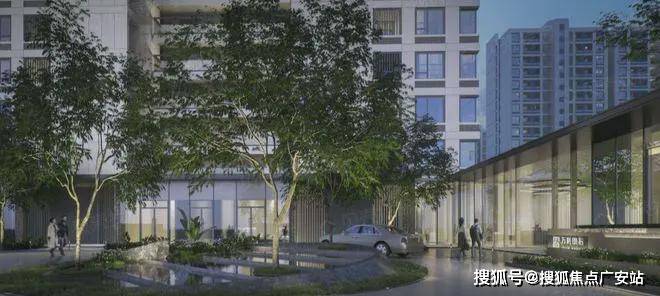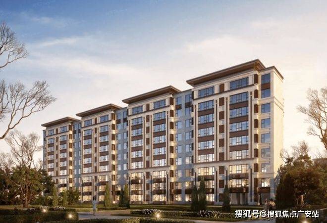 外立面以香槟金勾勒,社区规划"一轴双园八组团"景观,含微风草坪、林下健身等场景