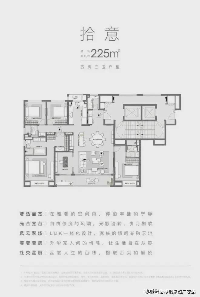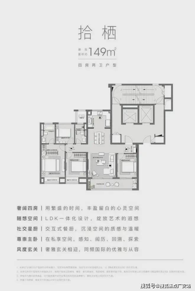 户型涵盖149-225㎡四至五房,采用LDK一体化、全景落地窗等设计,主卧配备镜柜美妆冰箱等细节