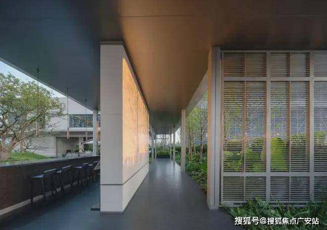项目外立面以现代简约风为主,纵向伸展线条,将立面体块切割出黄金比例。香槟金色兜圈线条带来的强烈框感,形成错落有致屋顶构架。简洁利落的线条、挺拔的身姿,引得每一位“产品颜控”尽折腰。