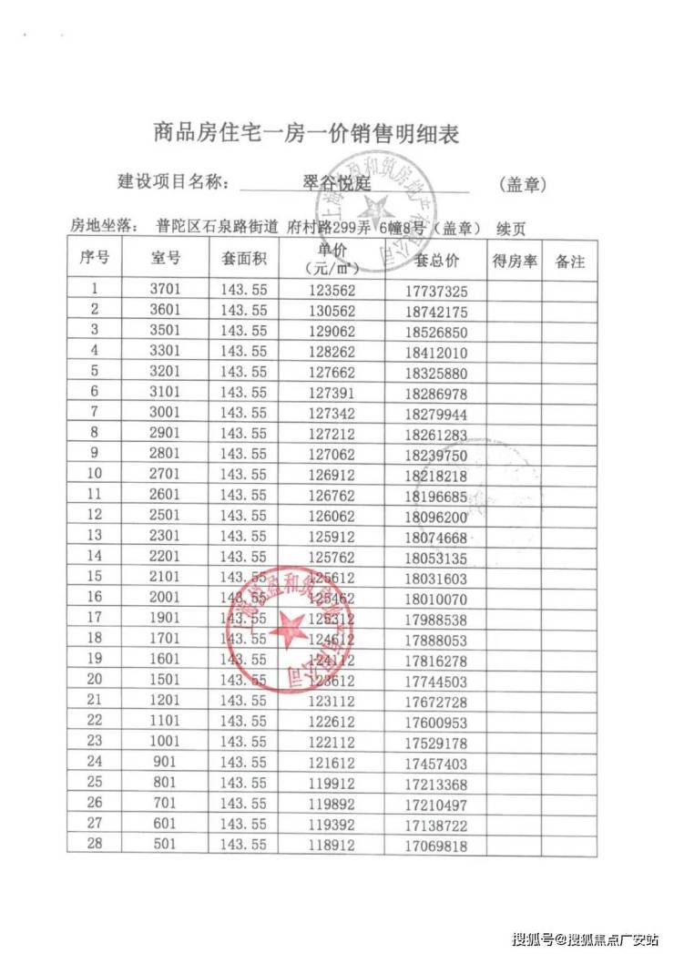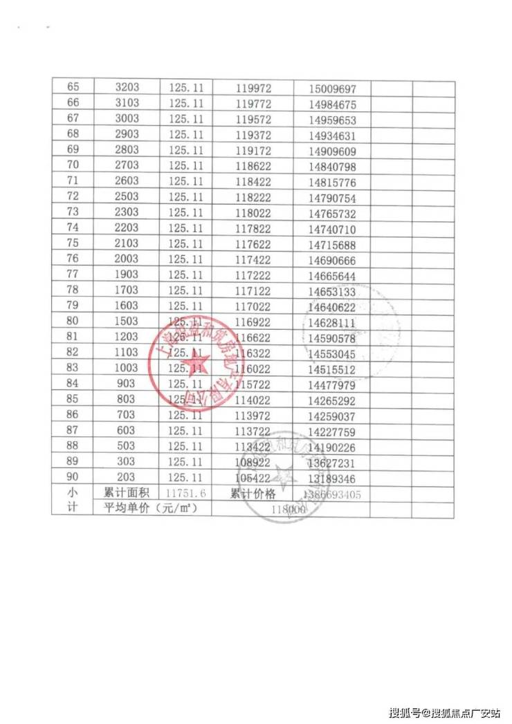 上期一房一价表: