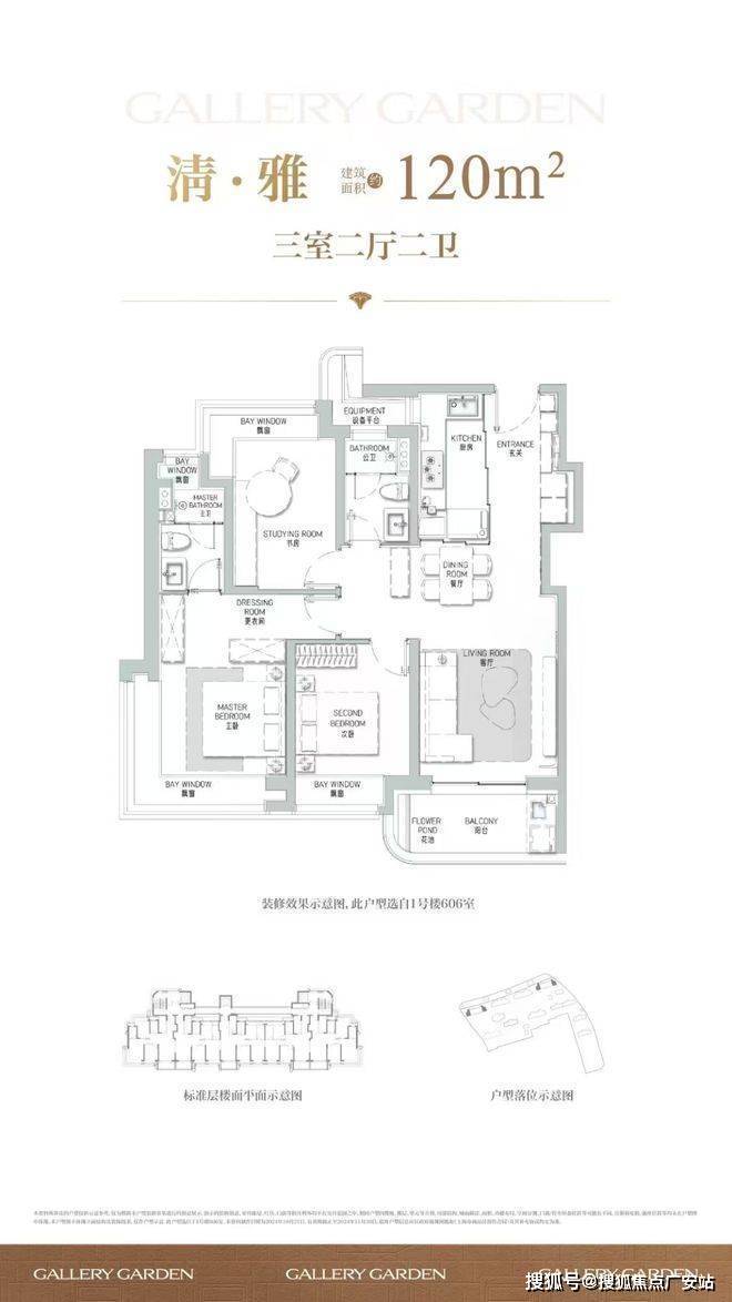 约120㎡ 三房两厅两卫:四开间朝南,客厅面宽≥5.2米,总价约1350万起