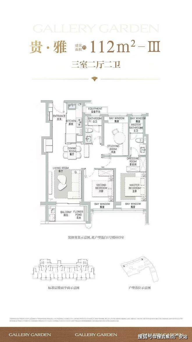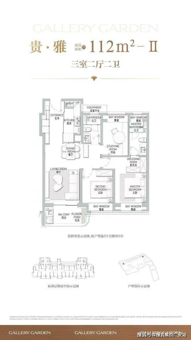 项目舍弃了传统逼仄的百平三房,将最小面积提升到了建面约112㎡,而这12个平方的提升,让整体户型的空间尺度感达到了新的高度。