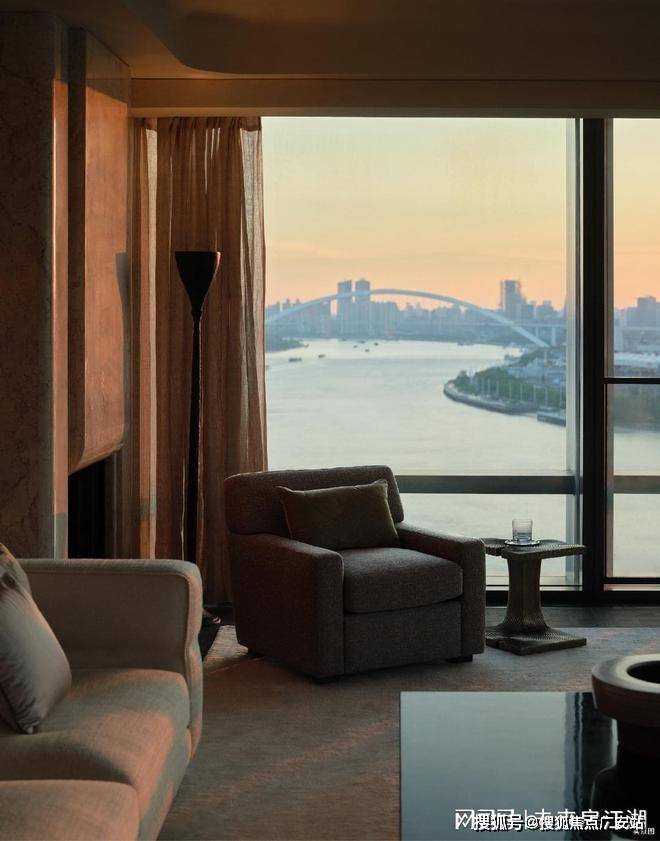 The project adopts New Asian architectural style, with米white stone and deep咖aluminum panels as the main color scheme, creating a简约yet layered modern aesthetic through rhythmic combinations of horizontal lines and vertical glass curtain walls. The roof features flat design with局部metal grilles, ensuring architectural integrity while enhancing visual tension through material contrast. The转角处innovatively uses弧形glass curtain walls to achieve 270° panoramic views, transforming city skylines into indoor landscapes.