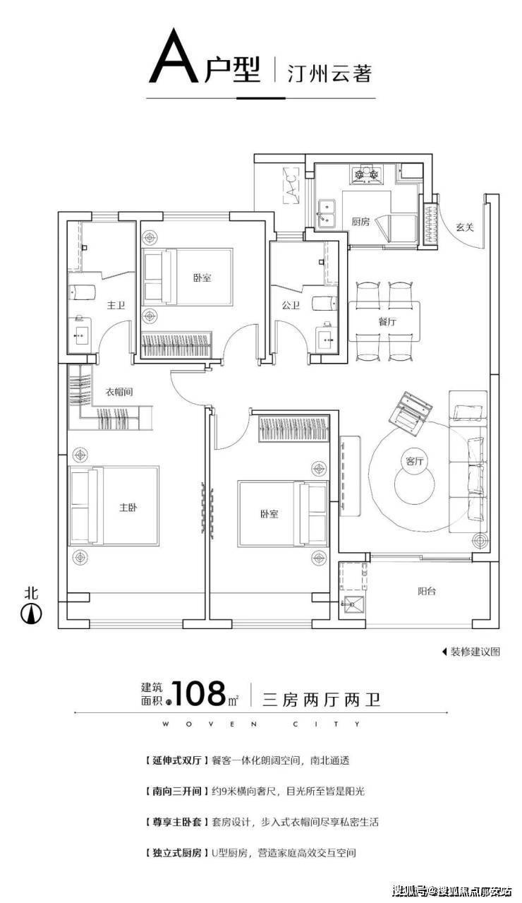 一、建面约108方三房两厅两卫中间套: