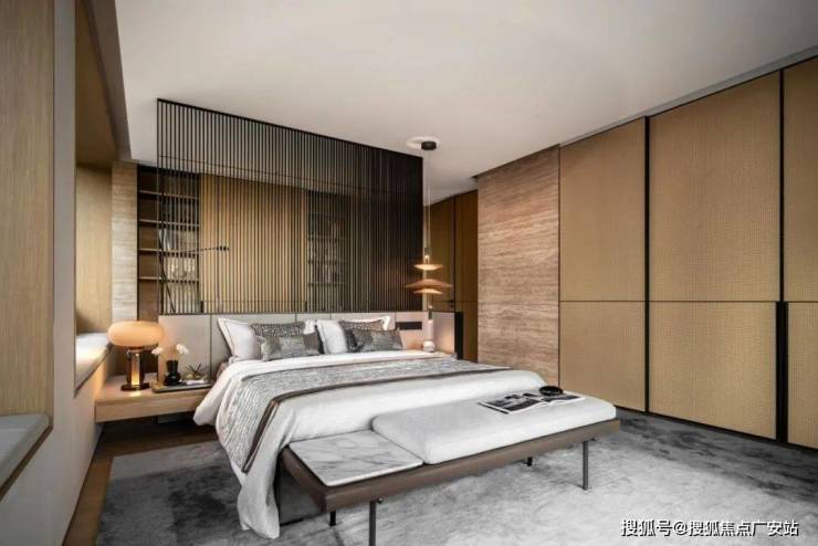 次卧的色调相对更为深邃,设计师通过不同的色彩选择,为静谧的氛围赋予了别样的诠释。有的空间明亮温暖,有的则内敛深沉,各种高品质材料相互搭配,编织出柔软而舒适的触感,再辅以恰到好处的艺术装饰,将空间的高级感提升到新的高度。