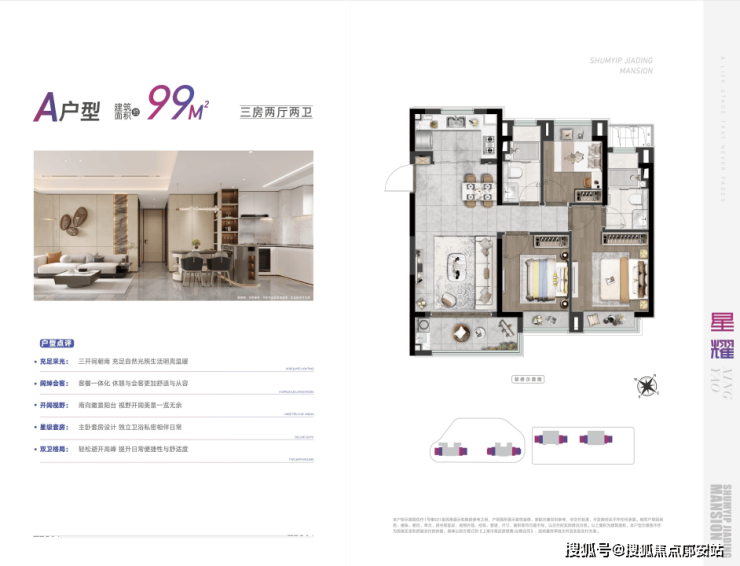 深嘉上府主力户型为建面约88㎡、99㎡的三房,整体布局没有过度“炫技”,但结构扎实,更 注重空间的合理分配与功能的均衡性 ,属于典型的实用型高分户型。