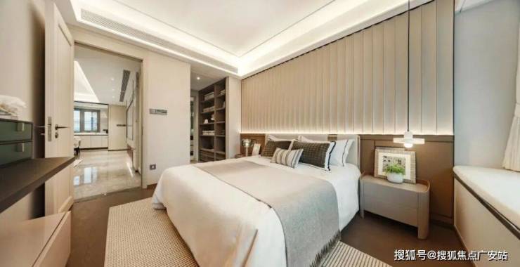 南向主卧带走入衣帽间,南向次卧带270°采光与观景视野阳台,甚至北向两个房间开间均达约3米,通常这些是很多在售140㎡以上户型才有的房间尺度感。这款128㎡户型。