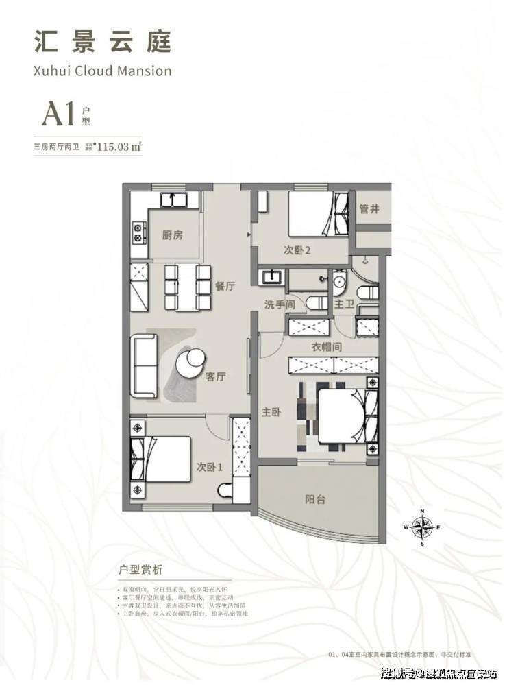 朝向:两南一北户型正,全日照采光,悦享阳光入怀
