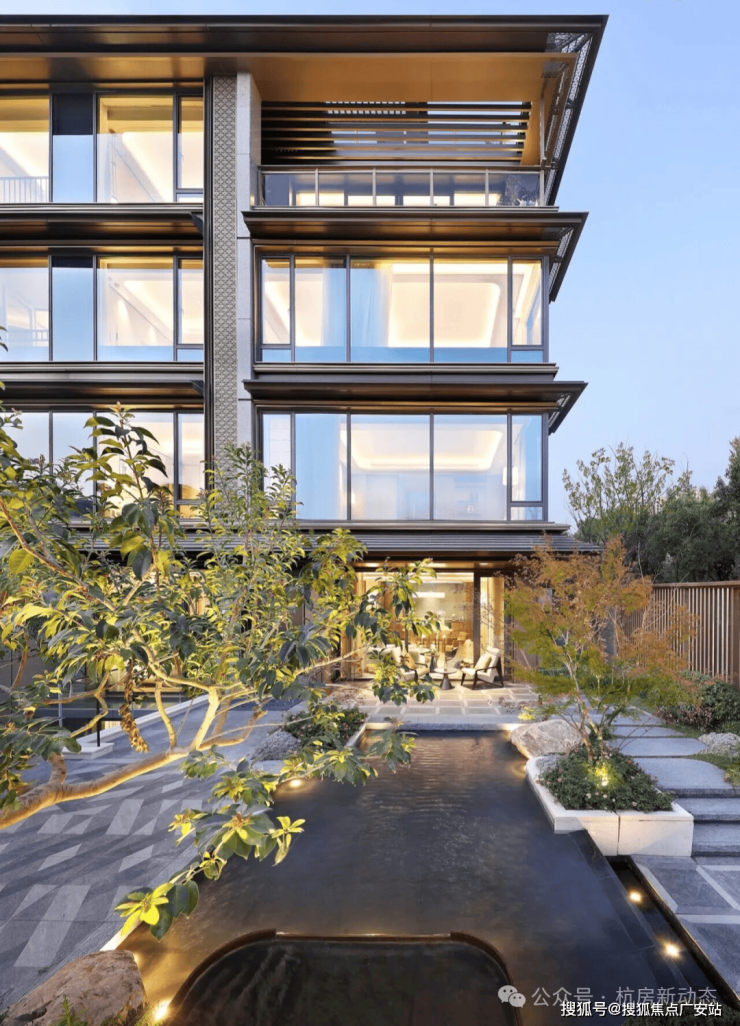 咏月望庐一脉【庐系】TOP级基因,以石材、LOW-E玻璃、金属铝板为主材,整体轮廓由纤长的水平线条统摄,搭配如月光洗过一般的玻璃,将现代建筑的轻盈通透,与宋画中亭台楼阁的澹远意境,映照于现实之中,以“现代形东方意”的经典建筑美学,回应城市低密栖居信仰。