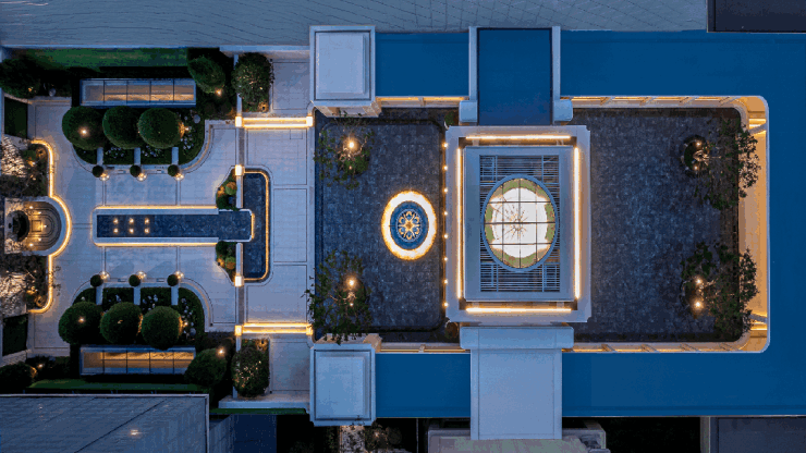 漫步其中,你会在“缪斯艺廊”感受罗马柱阵列倒映于清澈镜面水的庄重与灵动;葡萄牙米黄石材与睡莲池共同营造的“莫奈花园”一角,让人仿佛漫步在油画之中;