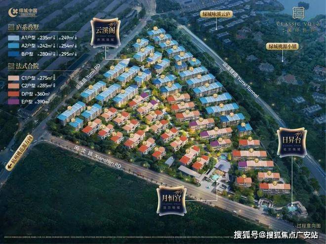 绿城桃花源低密项目绿城溪径恒庐,规划为合院+叠墅,共计363套,(风格现代东方+创新简法),99套合院(285-396方)、264套叠墅 (249-280方)。