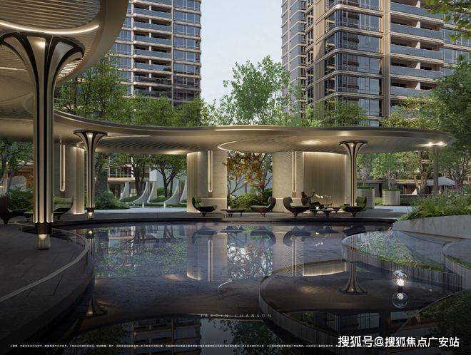 项目也采用当下豪宅新盘才运用的风雨连廊,打造风雨无阻的归家体验的同时,也连接着社区核心景观节点和功能空间,大大增加小区景观的空间体验。