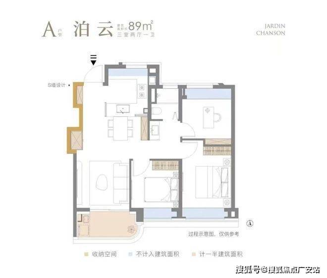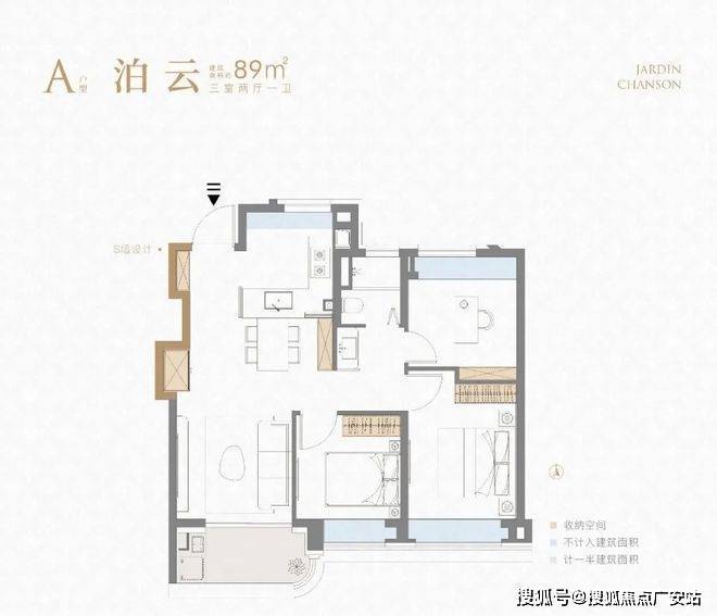 89㎡户型实现3房2厅1卫功能,厨房带飘窗