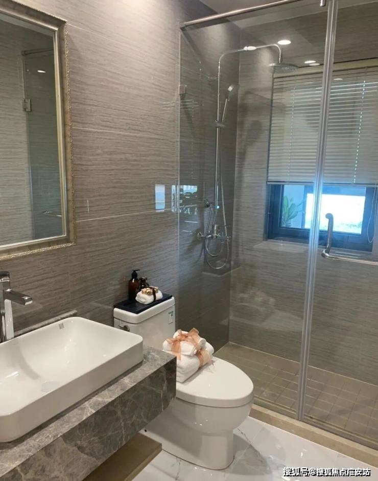样板房装修采用"轻奢新中式"风格,墙面选用意大利进口哑光石材,地面铺设人字拼木地板。厨房配备德国米勒嵌入式家电,卫生间采用杜拉维特智能马桶与汉斯格雅恒温花洒。The model house interior adopts a "Light Luxury New Chinese" style, featuring Italian imported哑光 stone walls and herringbone wood flooring. The kitchen is equipped with German Miele嵌入式 appliances, while the bathroom includes Duravit smart toilets and Hansgrohe恒温 shower systems.