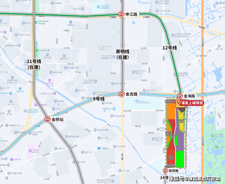 作为浦东金桥的巨型TOD的项目坐落在金海路地铁站的上盖,地铁12号线和9号线直接在项目下方穿行而过,其中,J9B-14地块规划有住宅产品,是9/12号线地铁上盖。