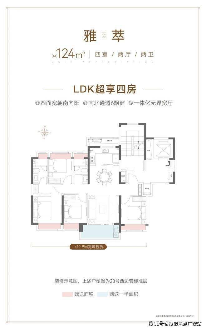 四开间朝南+南北通透!南向面宽达到约12.8m,采光度不言而喻清晨阳光照进来,开启活力满满的居家生活。