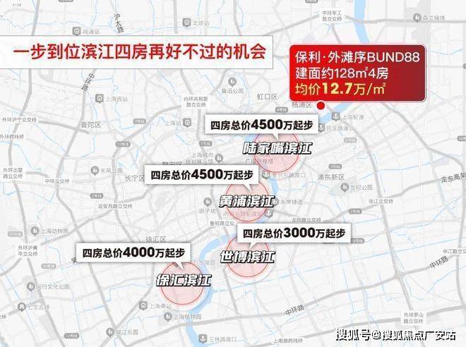 保利·外滩序BUND88(杨浦区平凉社区02H1-01地块),少量建面约130㎡4房在售,约1630万起!