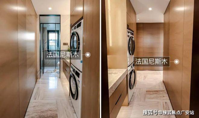 甚至建面约128㎡过道的木饰面都用法国尼斯木包裹,室内空间的每一个转角都质感满满。