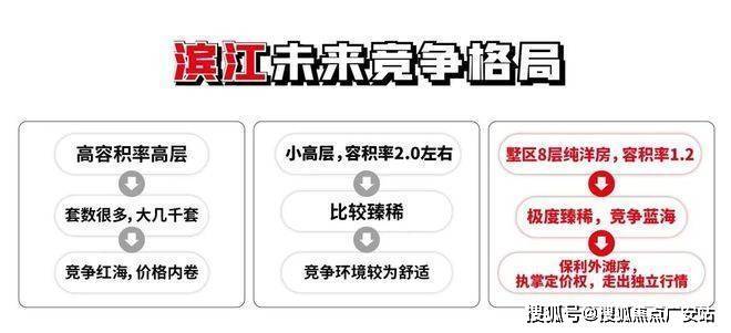 因为未来滨江更多是高容积率高层之间的红海竞争,而项目滨江8层真洋房竞争少,容易走出独立行情。