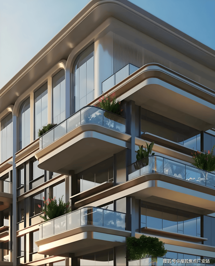 社区门头:立面设计更是将工艺美学与生活体验完美结合。内外双重门厅景墙运用了曲面月光米黄石层叠设计,层间搭配香槟金不锈钢,打造自然、峡谷意境,曲面不仅复刻钱塘江潮起潮落的流畅动感,更能在不同光线下呈现温润细腻的质感,让建筑随着日光变化展现不同美感。