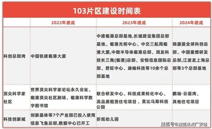 103国际创新协同区重点配套建成时间表