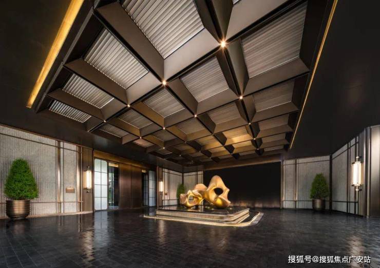 酒店入户同样是对标半岛酒店,车马院落客区的檐口、标识、星空顶等,增强入户的仪式感和奢华感。落客区的接待门采用海鸥丽晶酒店同款,尽显酒店式归家体验。