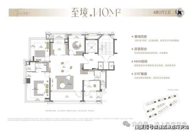 主力户型:建面约120-140㎡的三至四房,实得率高,户型设计实用。