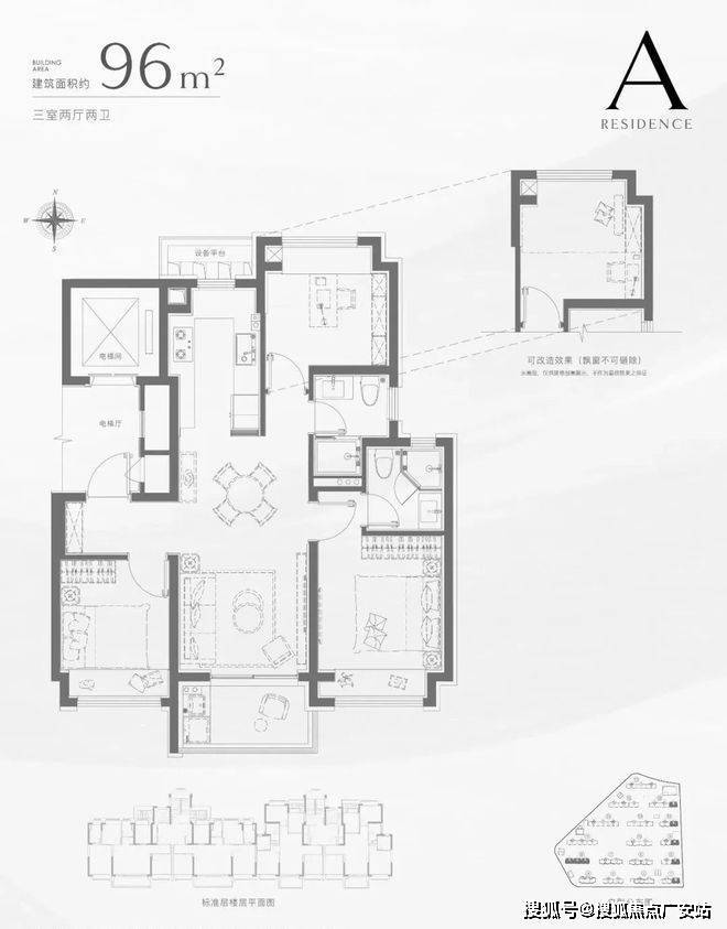 建筑面积约96㎡3房 经典飞机户型 精致进阶