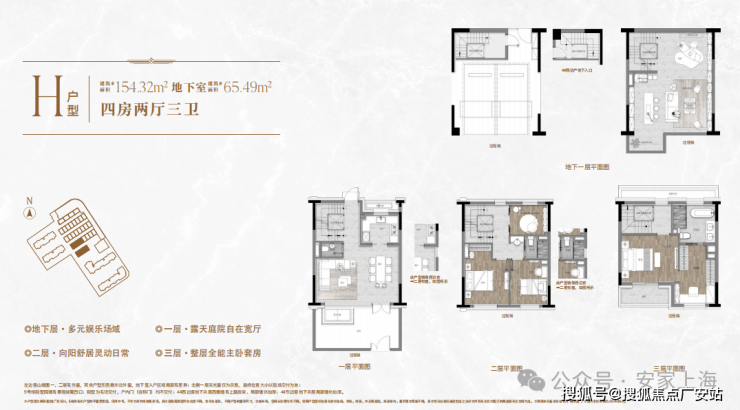联排别墅:建面约131-154㎡,地上三层+地下一层,总价2000-3000万元/套(部分加推房源)