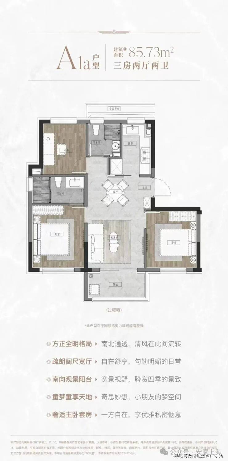 区别于市面上80多平2房或3房1卫,该户型做出了3房2卫的格局,功能性拉满,满足三代同堂/二胎家庭共居。