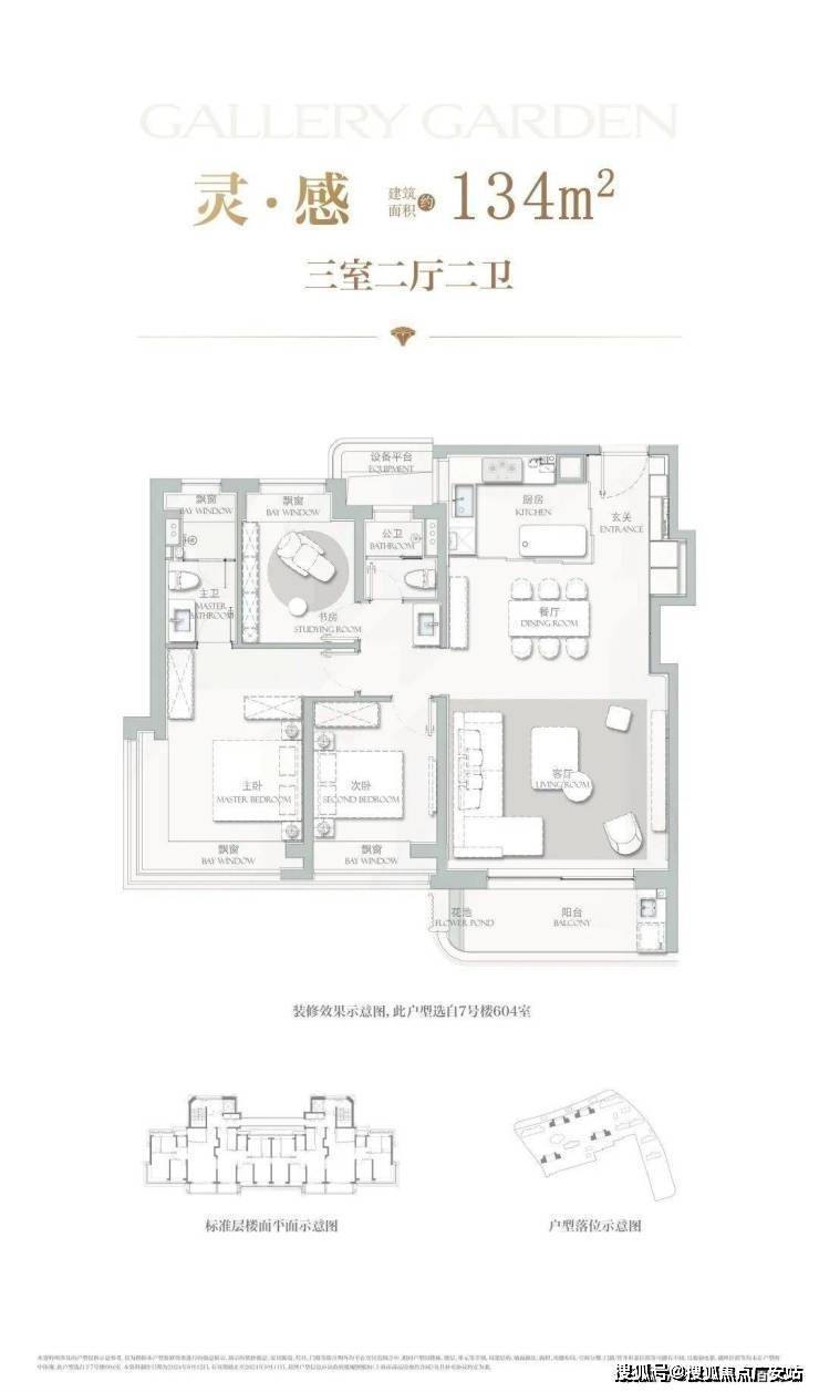 建面约134㎡3房2厅2卫,主力总价约1500-1700万,户型设计在上一个户型的基础上将各功能间尺度升级的同时,也做了一些更人性化的迭新。