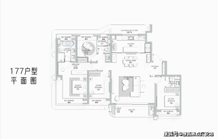 177m2艺术贵雅奢邸是海上·清和玺压轴力作,延续玺系经典的设计理念和思路,阔朗的四面大开间设计,客厅做到了大横厅设计,延续了曲面流体的阳台,并赠送了独具特色的阳台迷你花园。