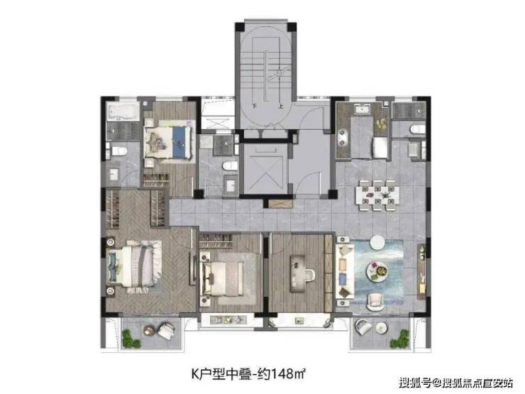 除此之外,项目还有建面约135㎡3房2厅3卫上叠、建面约148㎡4房2厅3卫中叠以及建面约148㎡4房2厅3卫下叠。叠墅产品上有露台下有庭院!