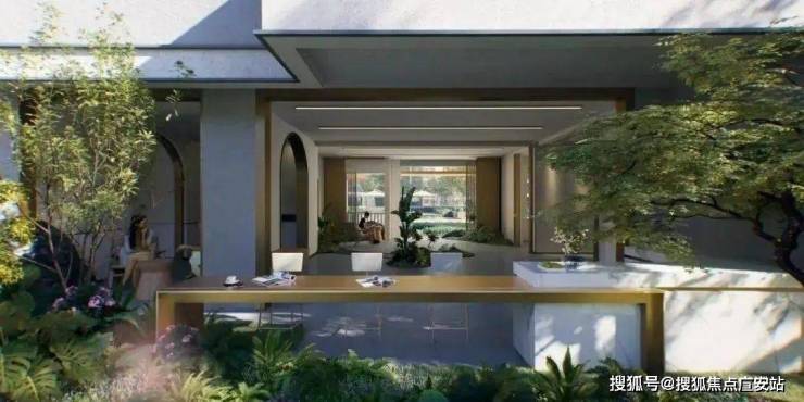 当然,中央景观不是孤零零存在,项目通过大草坪前后两栋楼底层打造半开放架空层的做法,并在两栋楼宇之间铺设约200米的通廊,将架空层、景观长廊、中央大草坪串联起来,形成了气势磅礴的约7000㎡中轴景观。