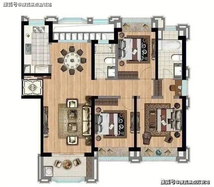 135m²3房2厅2卫户型