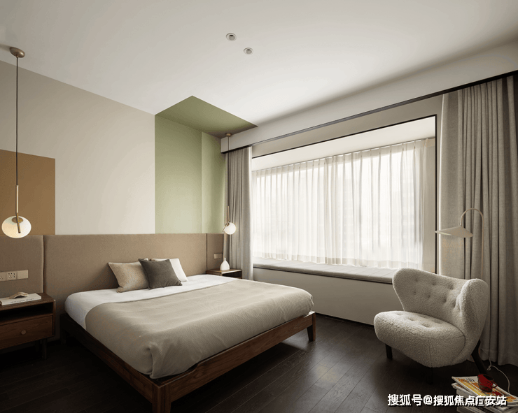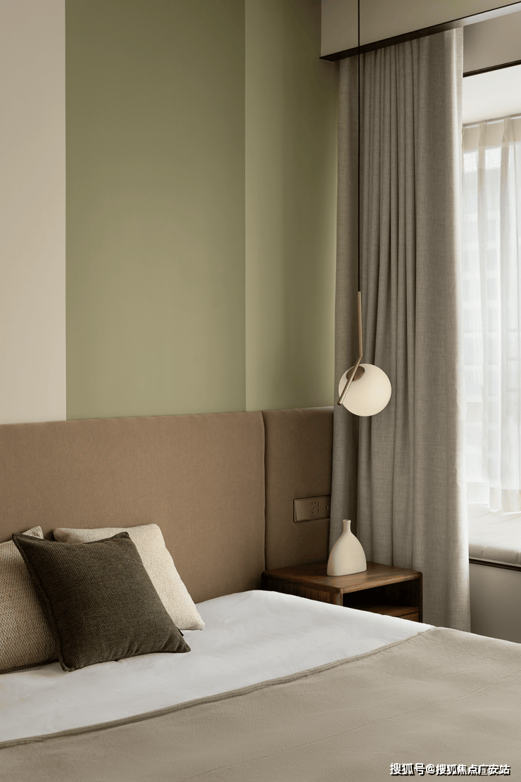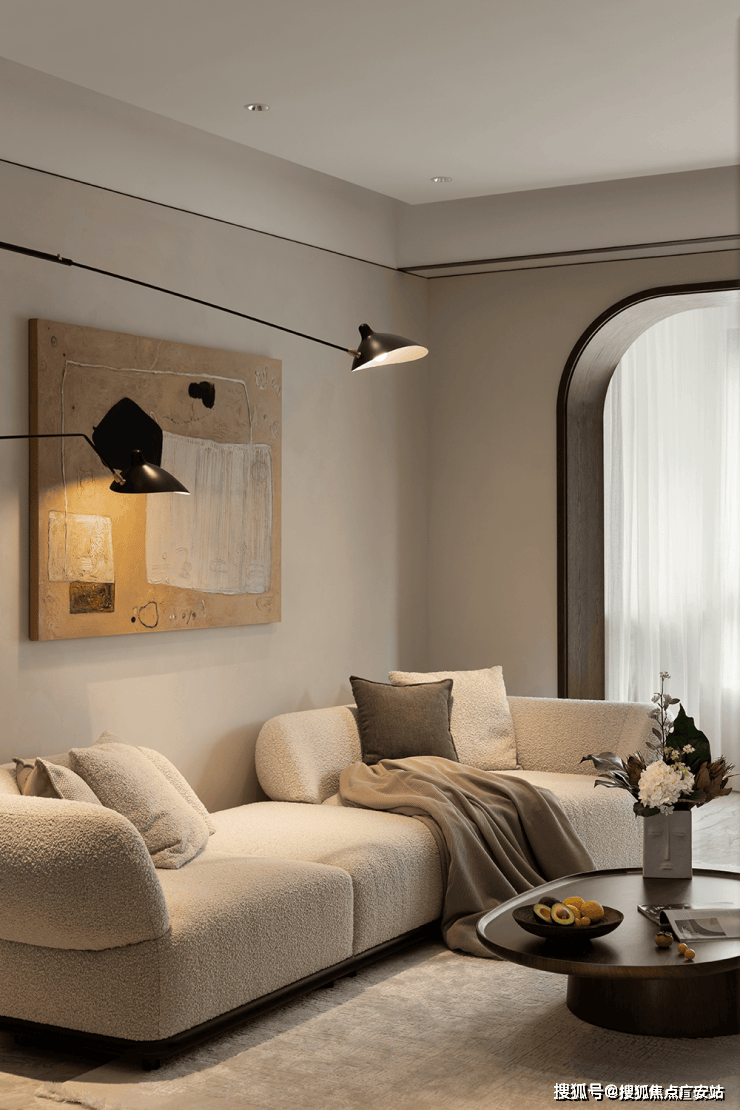 原户型玄关较空,客厅与餐厅之间也未合理过渡,整体缺乏大宅感,设计师重新规划布局,硬装上,采用轻法式设计,与原交付标准完美融合,柔和的家具线条与利落的硬装线条碰撞出一种平衡感。配色上,定位了温柔明亮耐看的大地色系,营造出温馨舒适的高级感氛围。