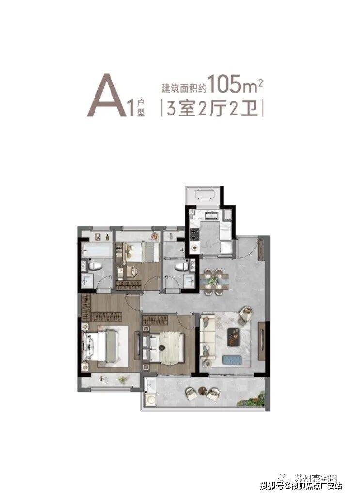 建筑面积约105㎡,3室2卫