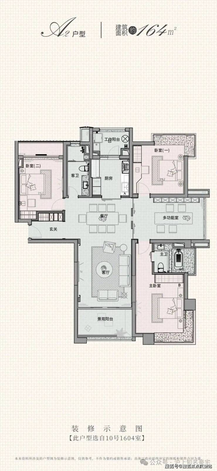建面约164㎡灵动四房户型