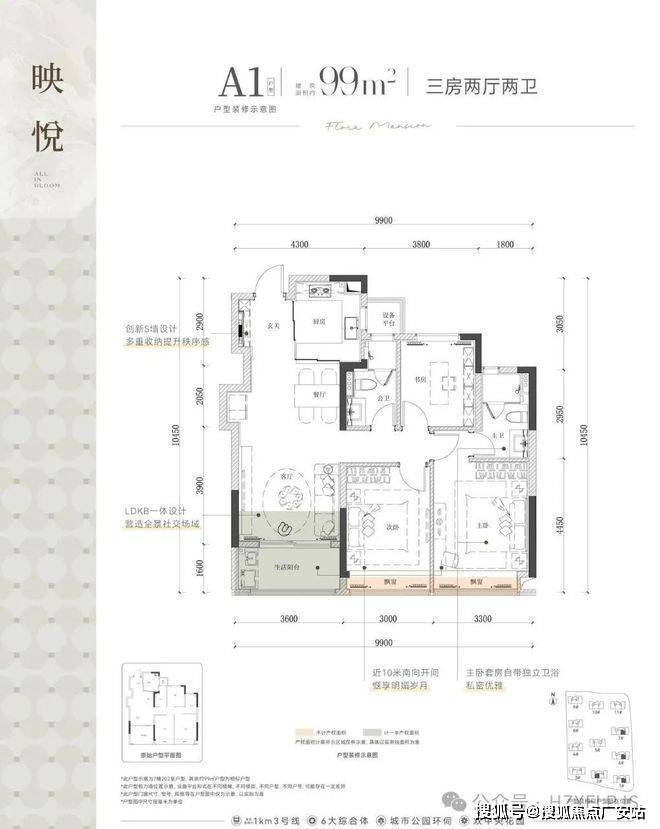 建面约99-139㎡创新空间,以S墙收纳、LDK一体、四开间南巨幕光境等颠覆设计进阶改善。