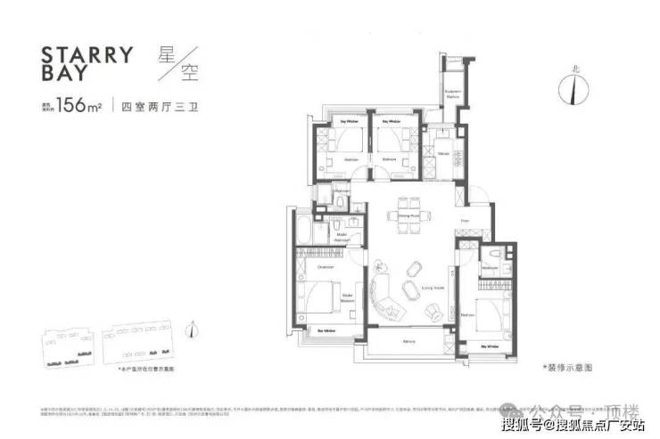 约156㎡户型精准适配中产改善客群,满足 “双套房” 带来的私密居住需求(比如父母同住时的互不干扰),预留出足够宽敞的客餐厅空间,真正“起步即高配”!
