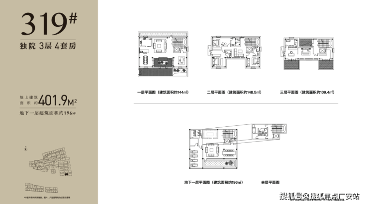 地上建筑面积约340㎡户型,地下一层建筑面积约165㎡。